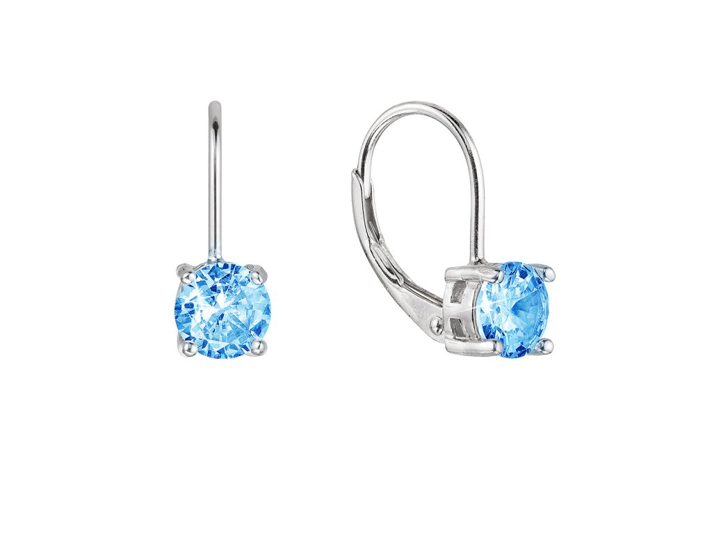 Stříbrné náušnice kulaté se zirkony 11477.3 aqua