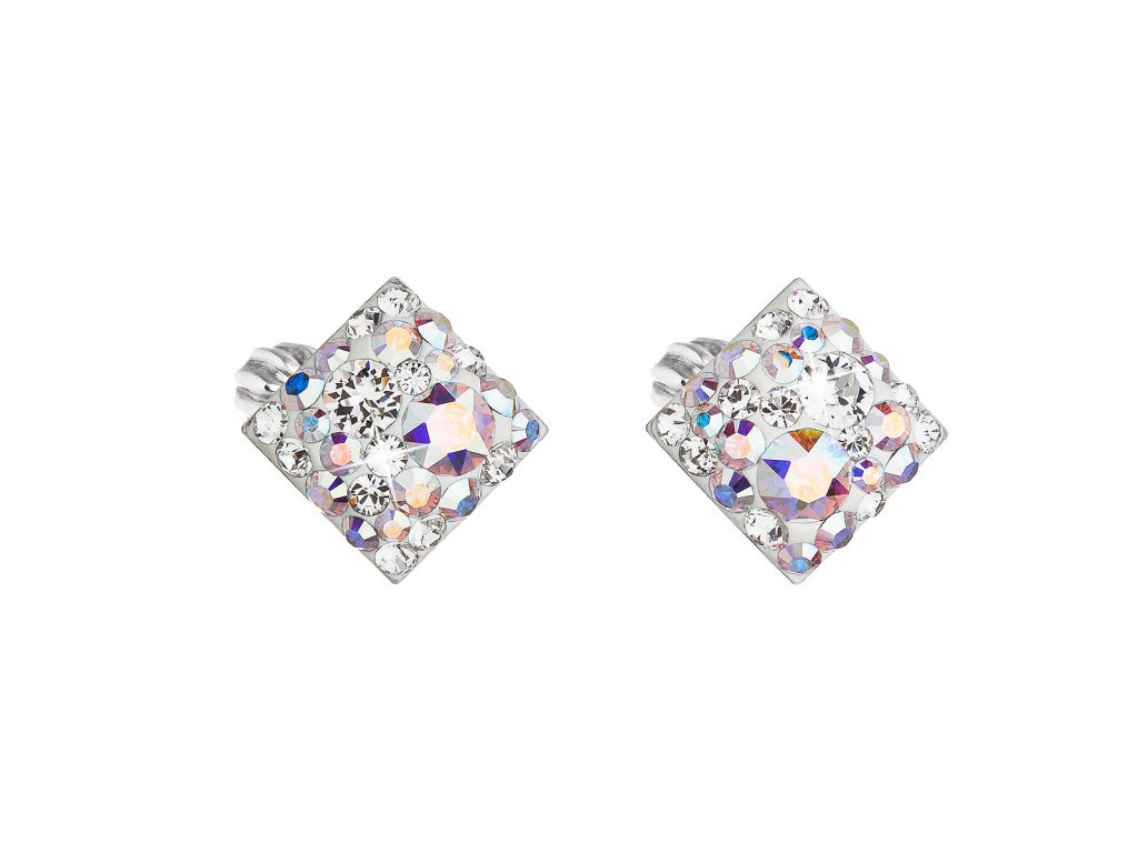 Stříbrné náušnice pecka s krystaly Swarovski ab efekt kosočtverec 31169.2
