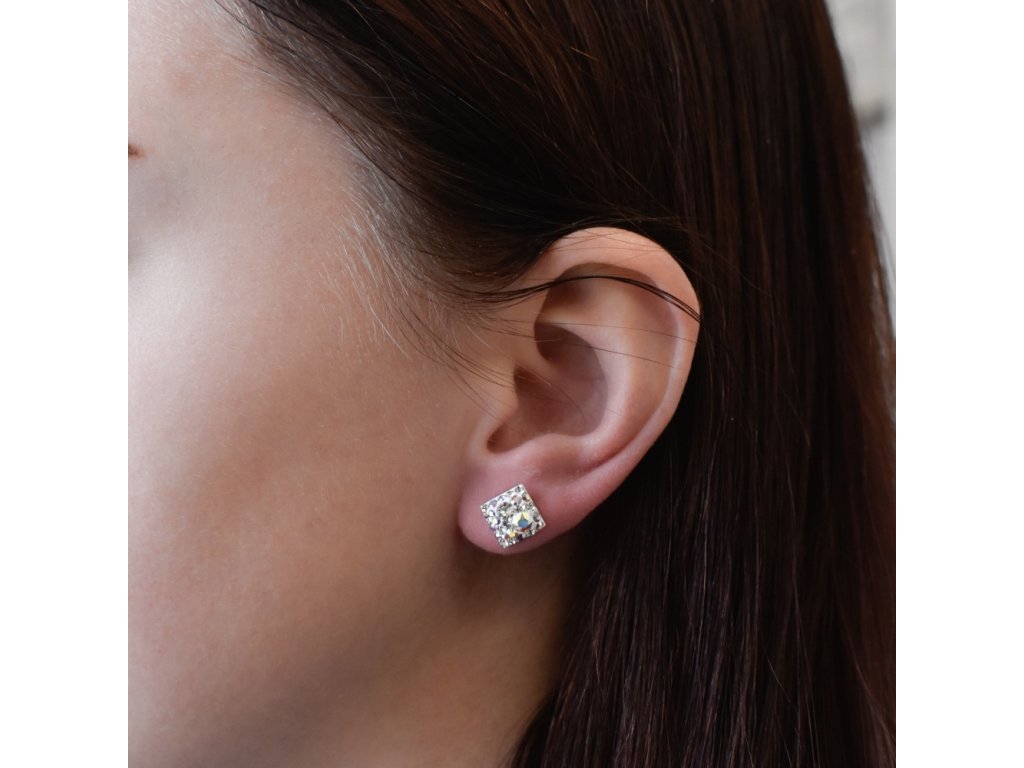 Náušnice jsou osázeny mnoha malými Swarovski krystaly v bílé barvě s AB efektem. Každý krystal Swarovski je do šperku jednotlivě ručně vsazen v naší šperkařské dílně. Do náušnic není přidán nikl, a tak jsou vhodné i pro alergiky.