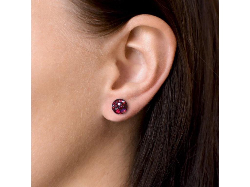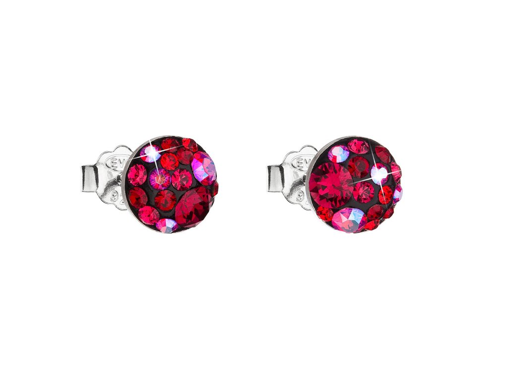 Stříbrné náušnice pecka s krystaly Swarovski červené kulaté 31136.3 cherry