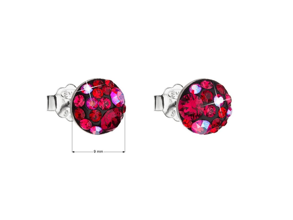 Parametry stříbrných náušnic pecek s krystaly Swarovski červené kulaté 31136.3 cherry