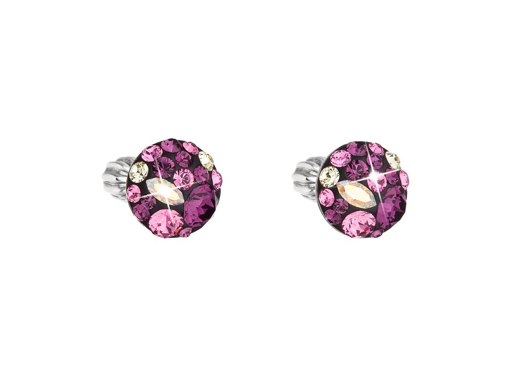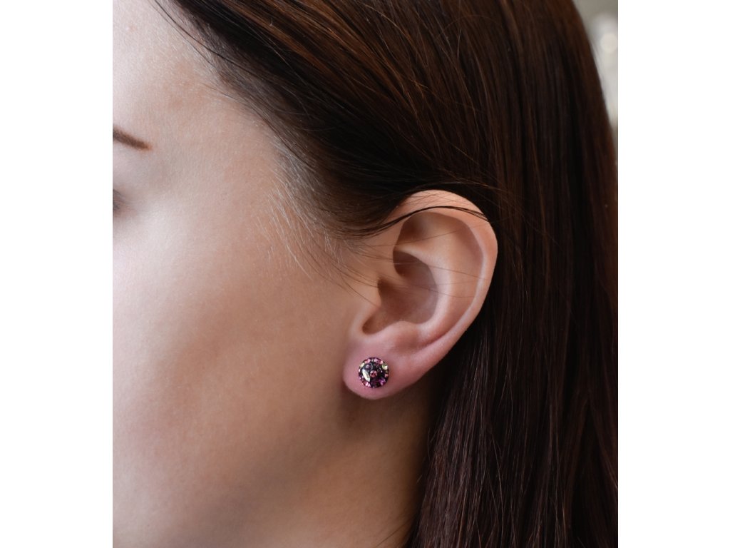 Stříbrné náušnice pecka s krystaly Swarovski fialové kulaté 31336.3 amethyst