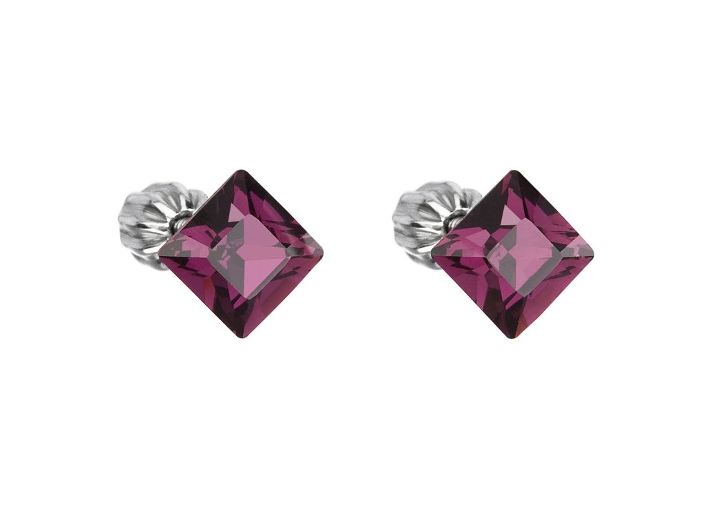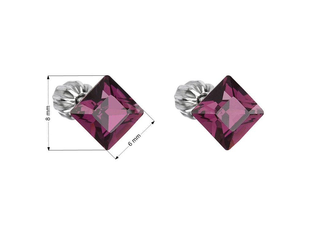 Parametry stříbrných náušnic pecek s krystaly Swarovski fialový čtverec 31065.3