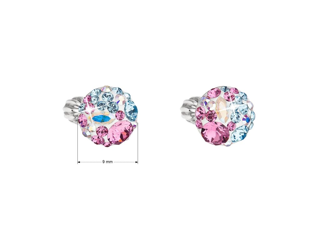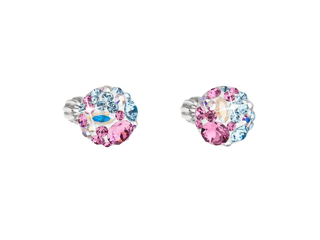 Stříbrné náušnice pecka s krystaly Swarovski mix barev kulaté 31336.3 water lilly