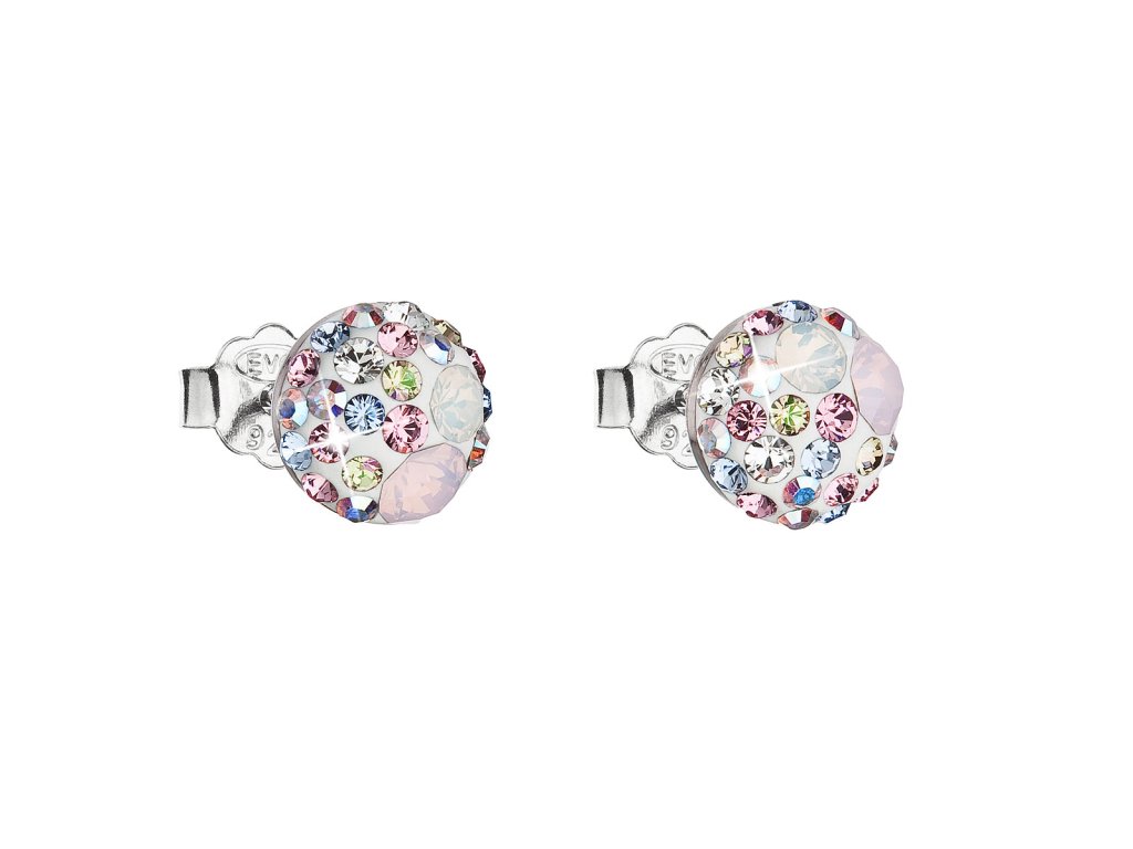 Stříbrné náušnice pecka s krystaly Swarovski růžové kulaté 31136.3