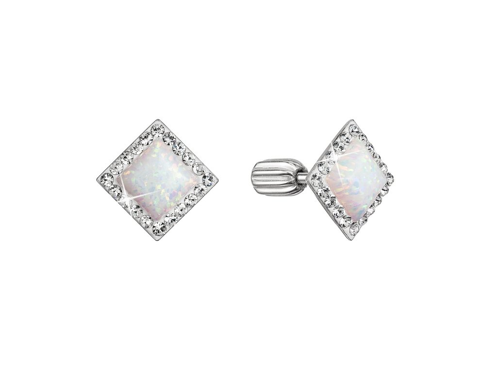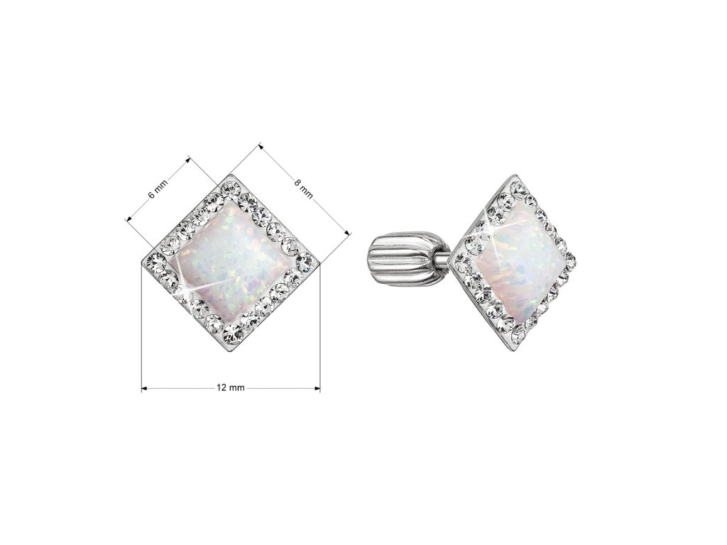 Stříbrné náušnice pecka se syntetickým opálem a krystaly Preciosa bílý kosočtverec 31318.1 white