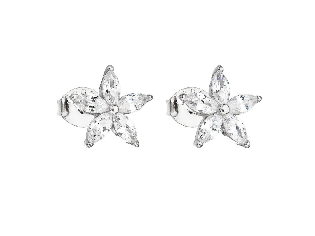 Stříbrné náušnice pecka se zirkonem bílá kytička 11069.1