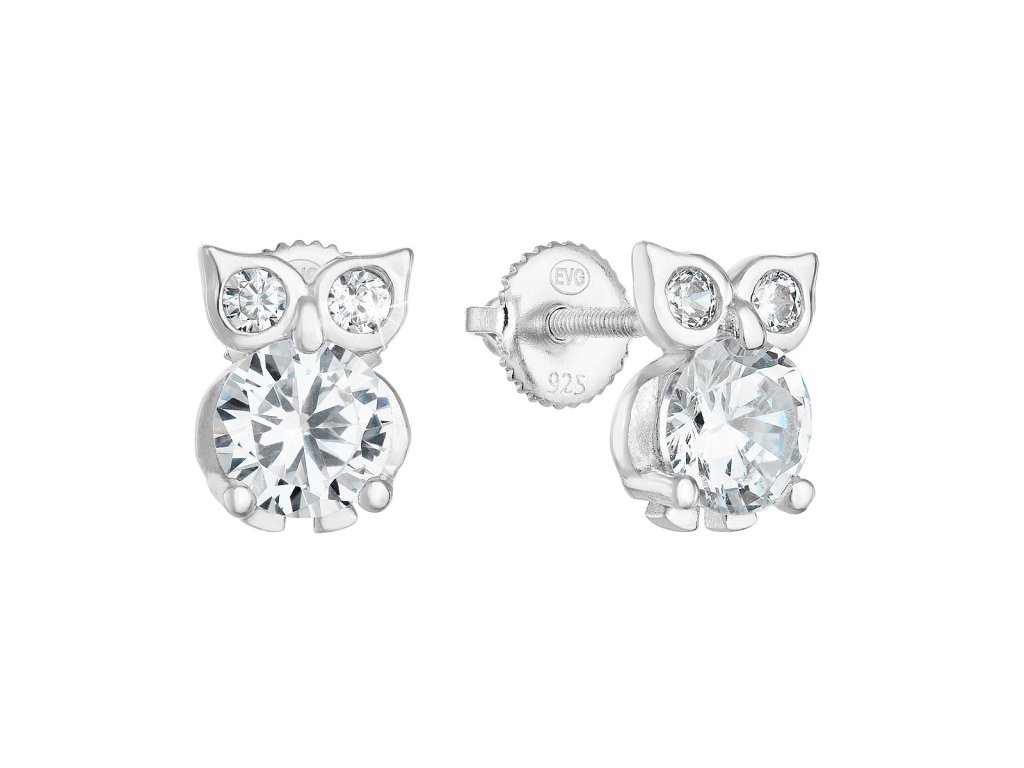 Stříbrné náušnice pecka se zirkonem bílá sova 11269.1