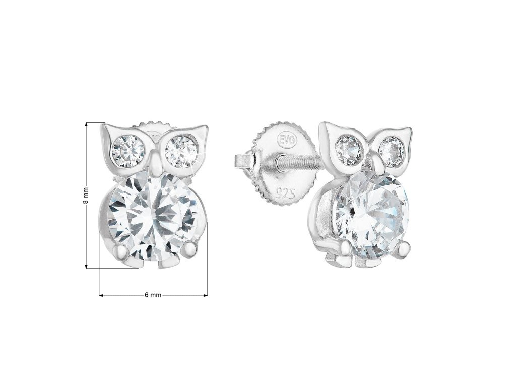 Parametry stříbrných náušnic pecka se zirkonem bílá sova 11269.1
