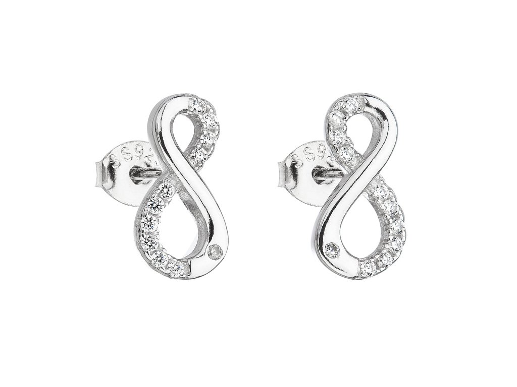 Stříbrné náušnice pecka se zirkonem bílé nekonečno 11017.1