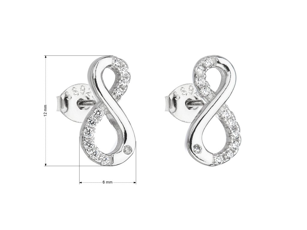 Parametry stříbrných náušnic pecka se zirkonem bílé nekonečno 11017.1