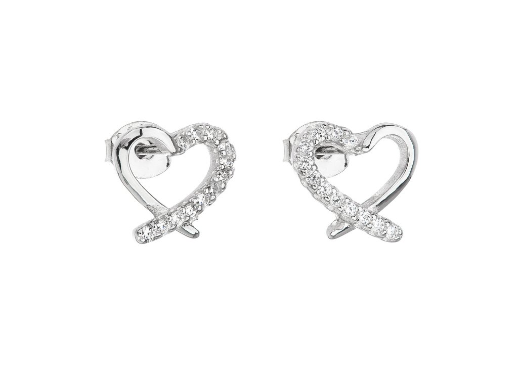 Stříbrné náušnice pecka se zirkonem bílé srdce 11079.1