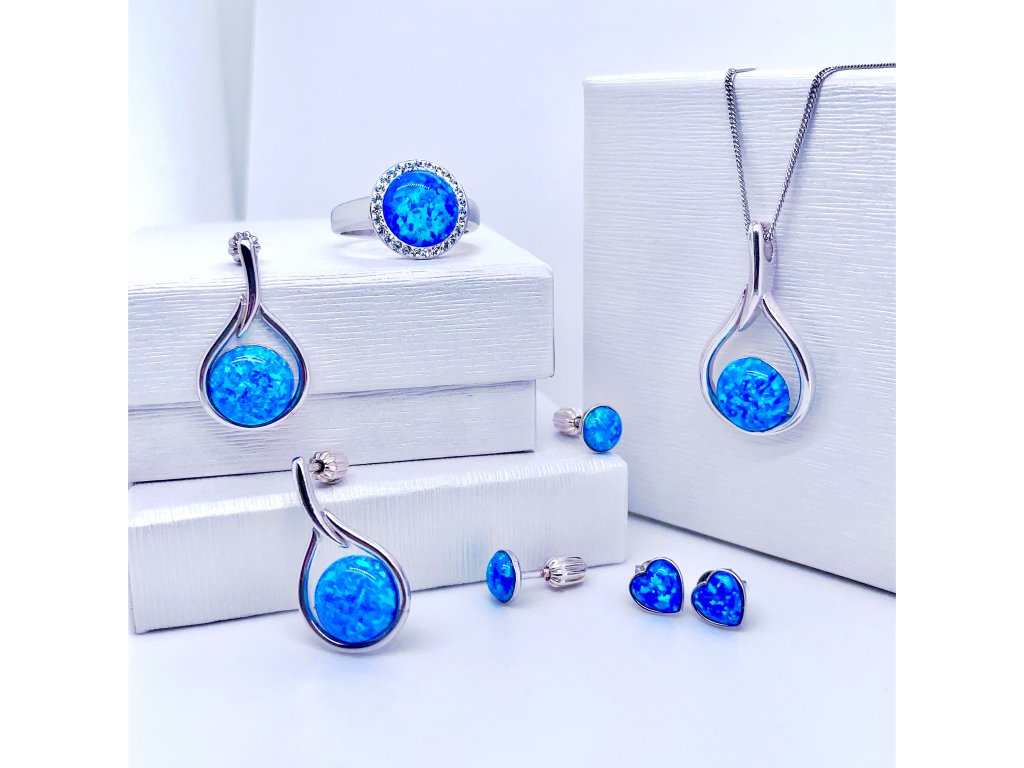 Stříbrné náušnice 11337.3 s modrým opálem ve tvaru srdce pro vás ručně vyrobily zručné šperkařky v Jablonci nad Nisou.