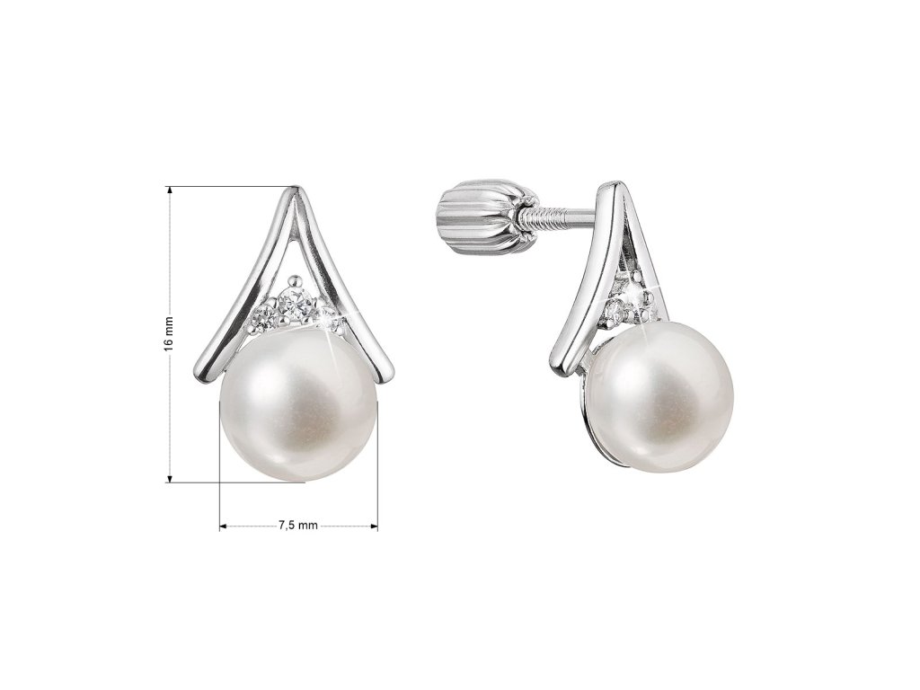 Stříbrné náušnice s bílou říční perlou a třpytivými zirkony jsou okouzlující kombinací.Náušnice 21083.1B jsou vyrobeny ze stříbra o ryzosti 925/1000 a zaujmou především díky říční perle kvality AA v bílé barvě. Náušnice jsou navíc zdobeny i několika průzračnými zirkony, které je krásně rozzáří. Šperk neobsahuje přídavek niklu, a tak ho mohou nosit i lidé náchylní k alergické reakci. Náušnice mají zapínání na balónek, který je ochrání proti nechtěné ztrátě.