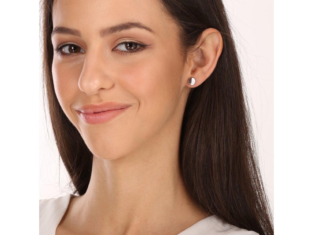 Lesklé placičky, s povrchem pečlivě leštěným do vysokého lesku, jsou minimalistickým prvkem, který vyzařuje čistotu a jednoduchost. Kulatý tvar o průměru 8 mm symbolizuje celistvost a harmonii. Drobný zirkon přitahuje pozornost a dodává šperku nádech luxusu.