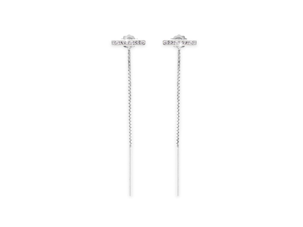 Stříbrné náušnice puzety čárka s řetízkem a s krystaly Swarovski Crystal (Stříbro 925/1000)