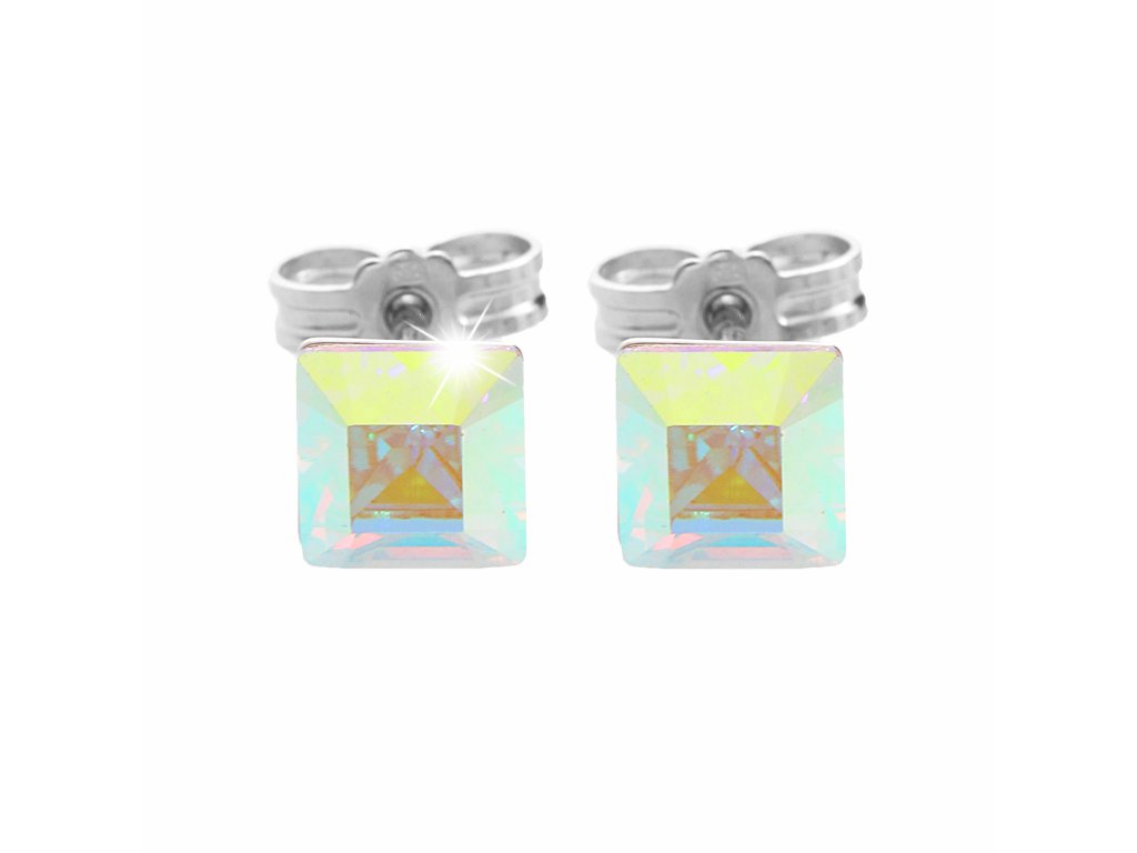Stříbrné náušnice puzety čtvercový krystal Swarovski AB (Stříbro 925/1000)