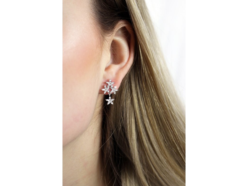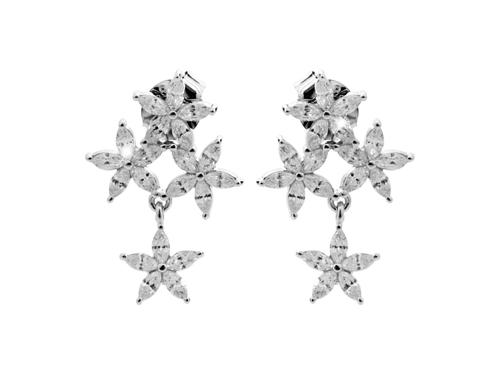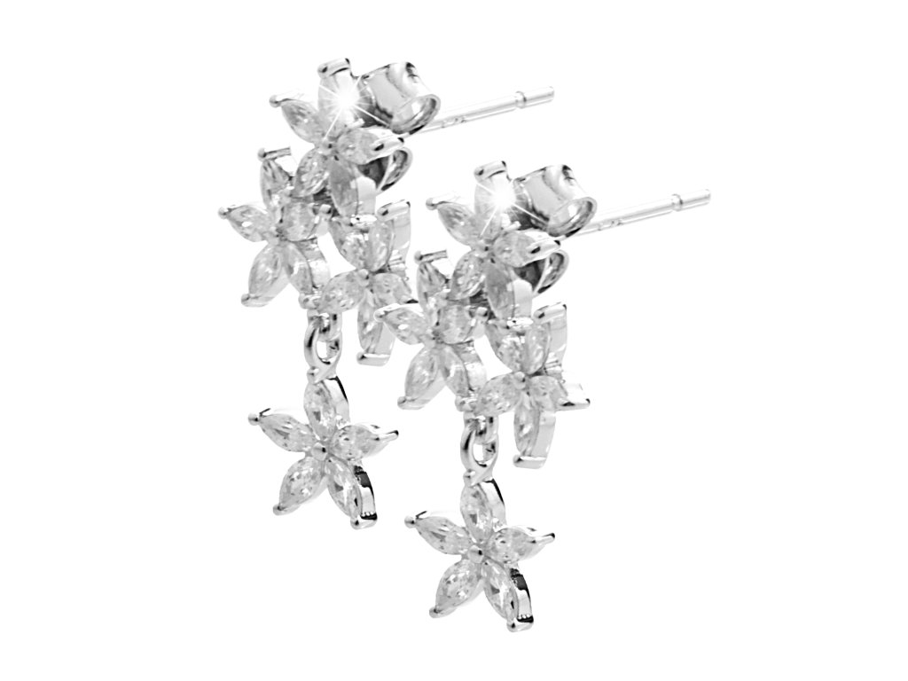 Stříbrné náušnice puzety čtyři kytičky s Kubickými zirkony Crystal (Stříbro 925/1000)
