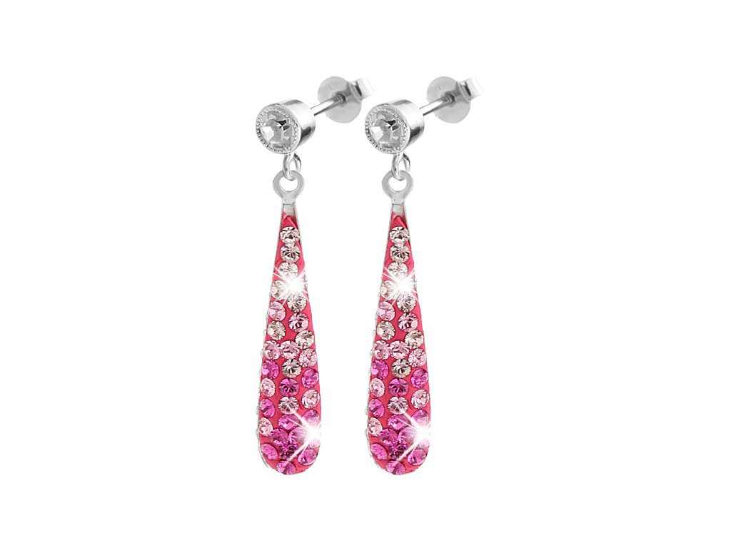 Stříbrné náušnice puzety dlouhé kapky s krystaly Swarovski Rose (Stříbro 925/1000)