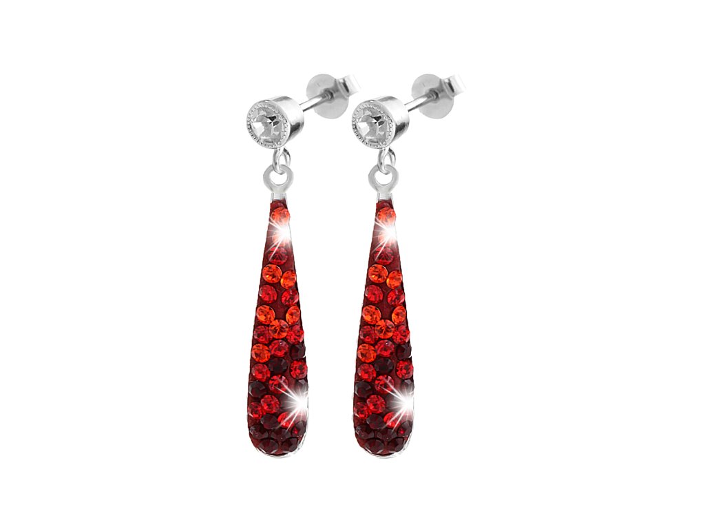 Stříbrné náušnice puzety dlouhé kapky s krystaly Swarovski Siam (Stříbro 925/1000)