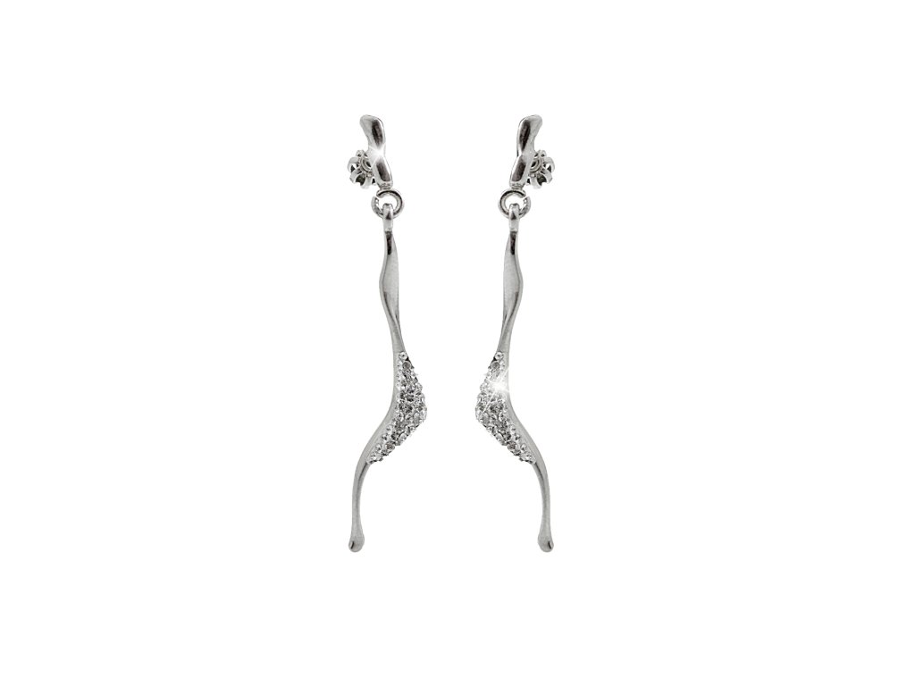 Stříbrné náušnice puzety dlouhé křivé vlnky a krystaly Swarovski Crystal (Stříbro 925/1000)