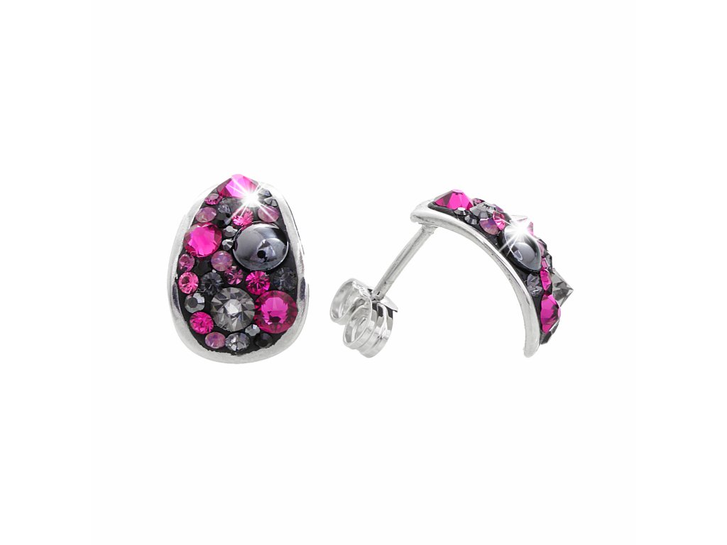 Stříbrné náušnice puzety kapka s krystaly Swarovski Fuchsia Mix (Stříbro 925/1000)