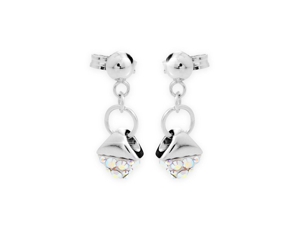 Stříbrné náušnice puzety kosočtverec s polovinou zdobenou krystaly Swarovski AB (Stříbro 925/1000)