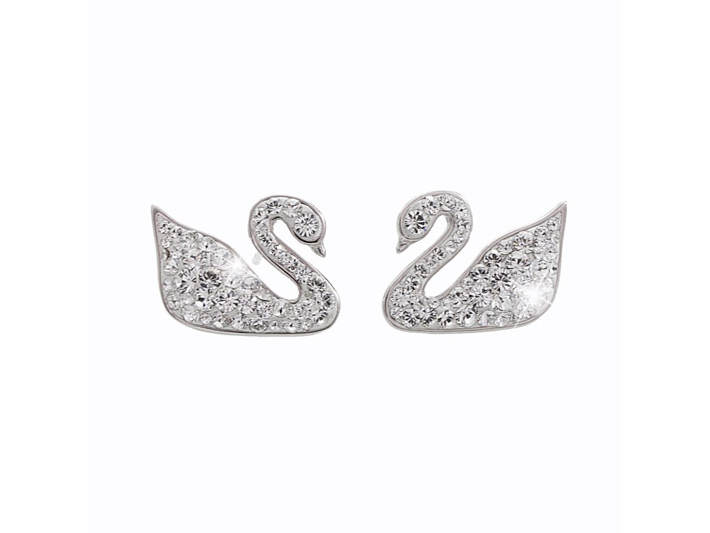 Stříbrné náušnice puzety labutě a krystaly Swarovski Crystal (Stříbro 925/1000)