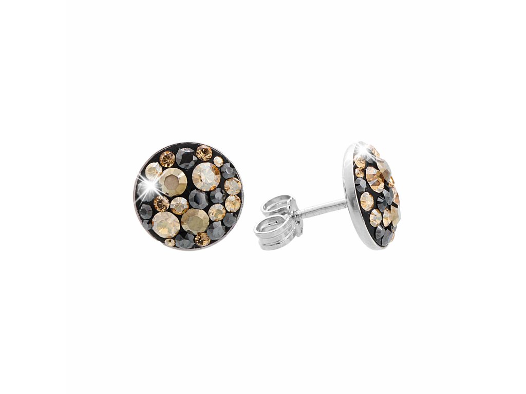 Stříbrné náušnice puzety malé kulaté lůžko s krystaly Swarovski Jet Mix (Stříbro 925/1000)