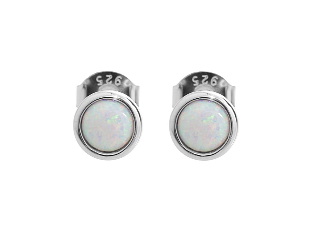Stříbrné náušnice puzety malý kulatý bílý opál bez krystalů (Stříbro 925/1000)