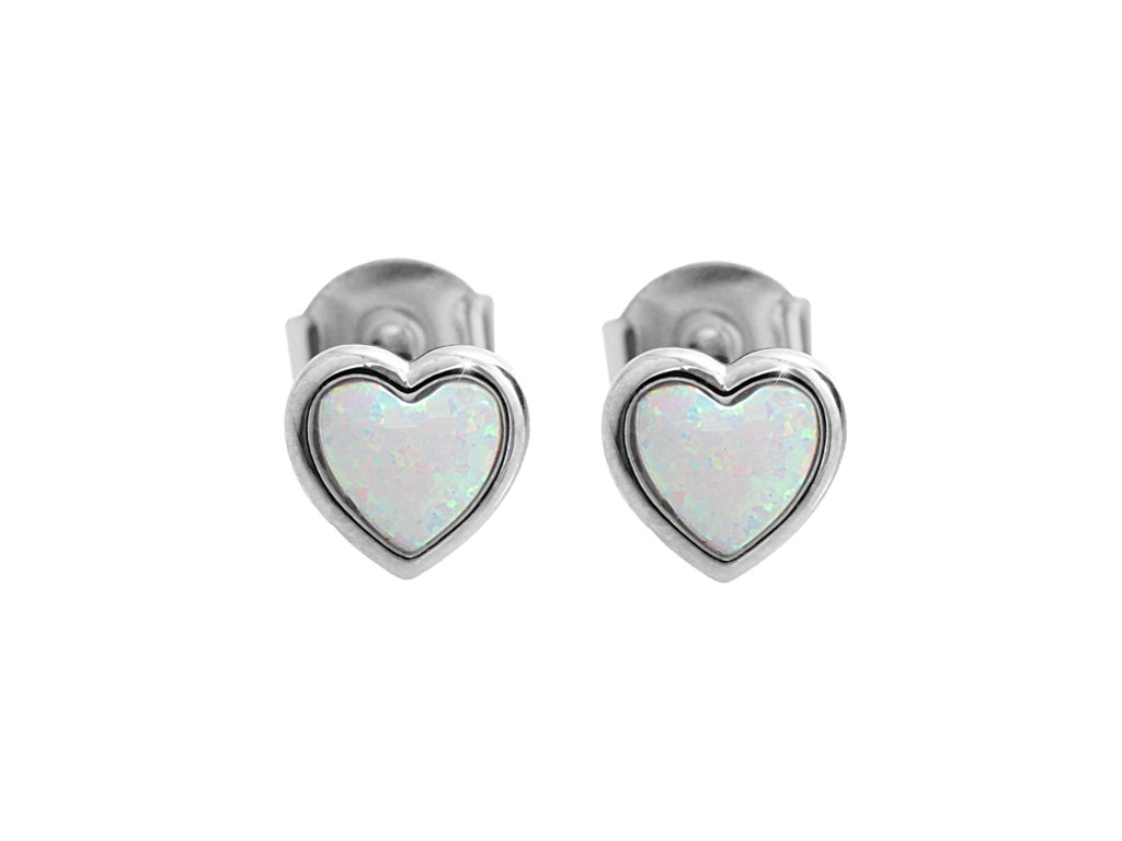 Stříbrné náušnice puzety malý srdcový bílý opál bez krystalů (Stříbro 925/1000)