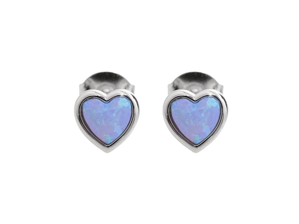 Stříbrné náušnice puzety malý srdcový modrý opál bez krystalů (Stříbro 925/1000)