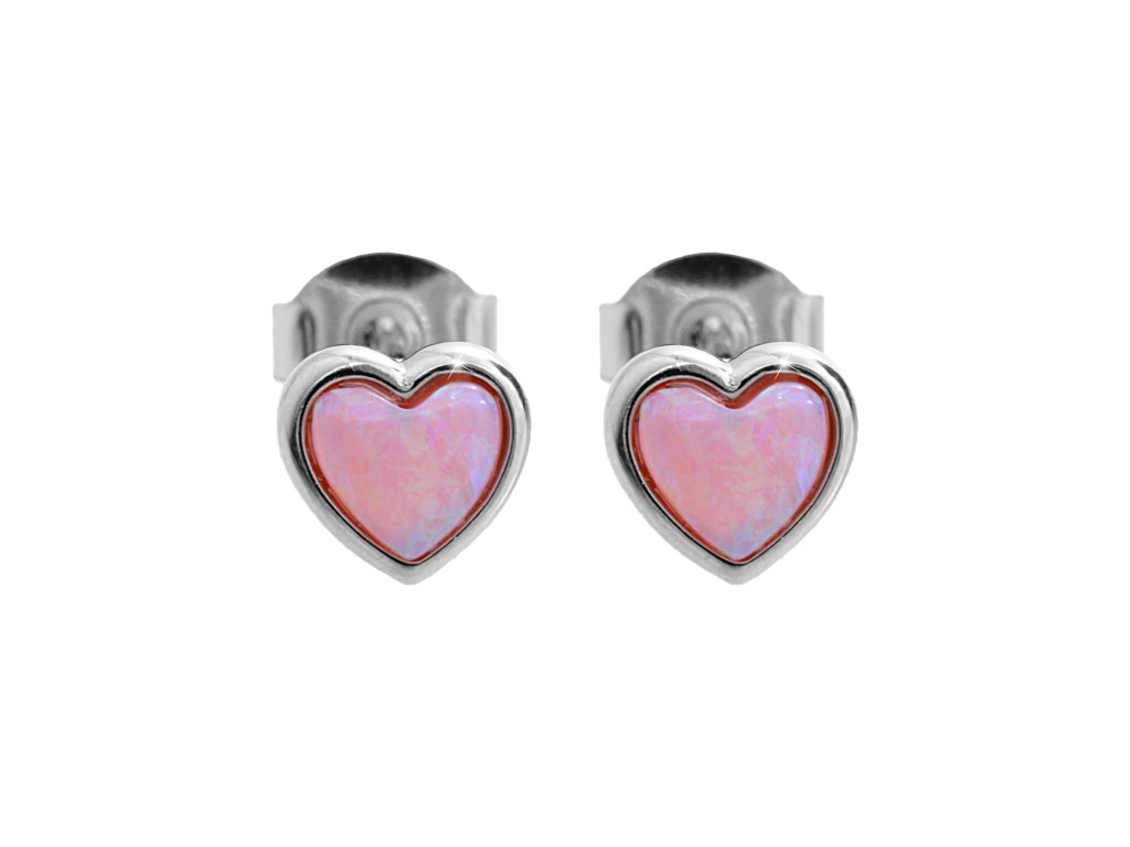 Stříbrné náušnice puzety malý srdcový růžový opál bez krystalů (Stříbro 925/1000)