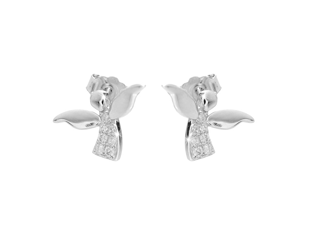 Stříbrné náušnice puzety mini andílek s Kubickými zirkony Crystal (Stříbro 925/1000)