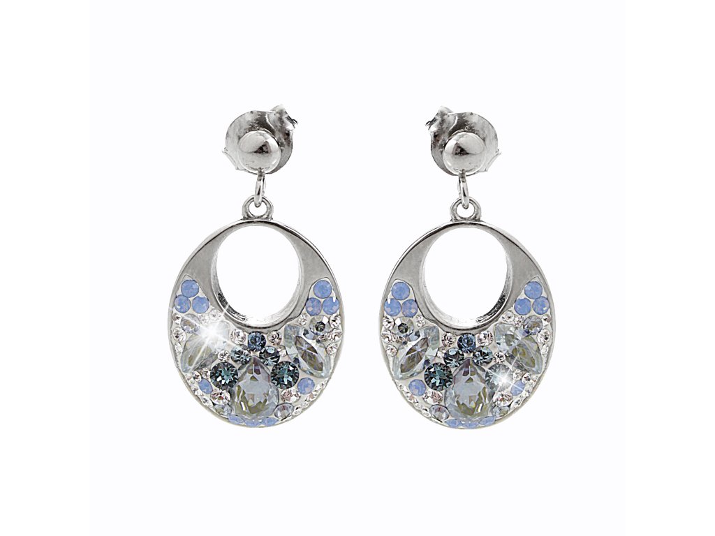 Stříbrné náušnice puzety ovál s dírou a krystaly Swarovski Ice střední (Stříbro 925/1000)