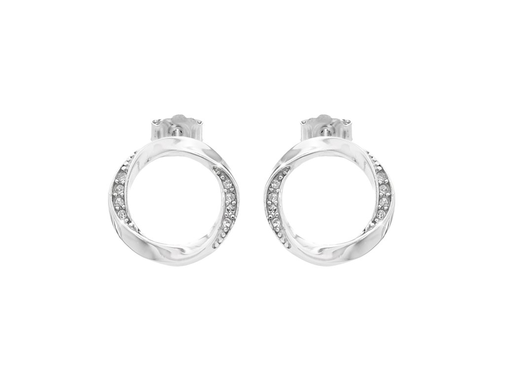 Stříbrné náušnice puzety překroucený kruh s krystaly Swarovski Crystal (Stříbro 925/1000)