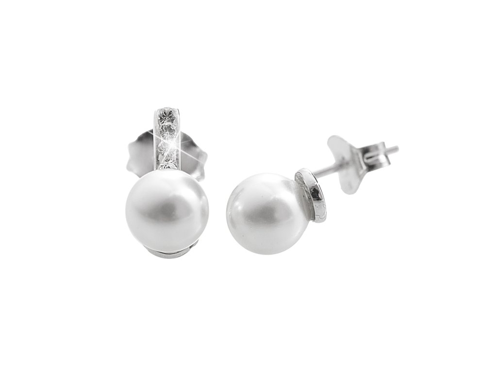 Stříbrné náušnice puzety s bílou perlou a krystaly Swarovski na čárce Crystal (Stříbro 925/1000)