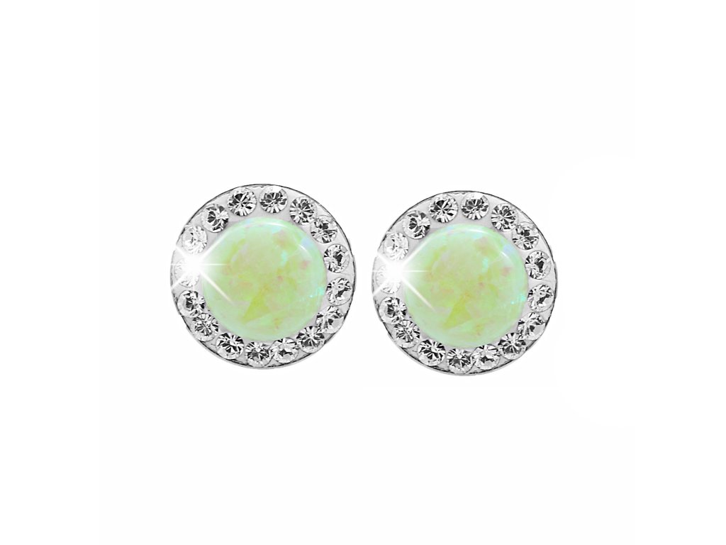 Stříbrné náušnice puzety s kulatým opálem a krystaly Swarovski Green malé (Stříbro 925/1000)