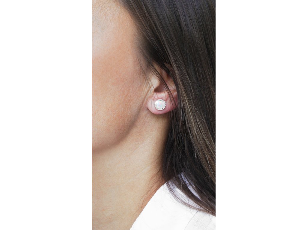 Stříbrné náušnice puzety s kulatým opálem a krystaly Swarovski White malé (Stříbro 925/1000)