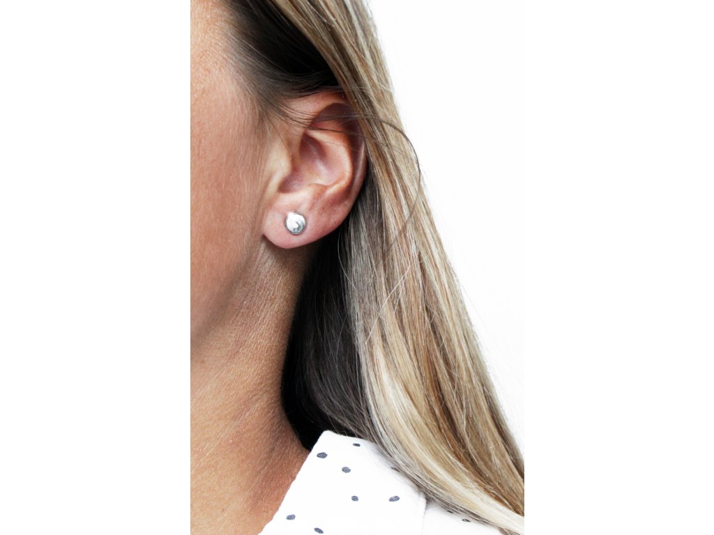 Stříbrné náušnice puzety s pravým kamenem Magnezit (Stříbro 925/1000)