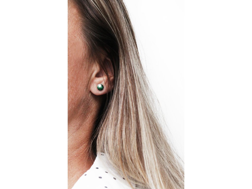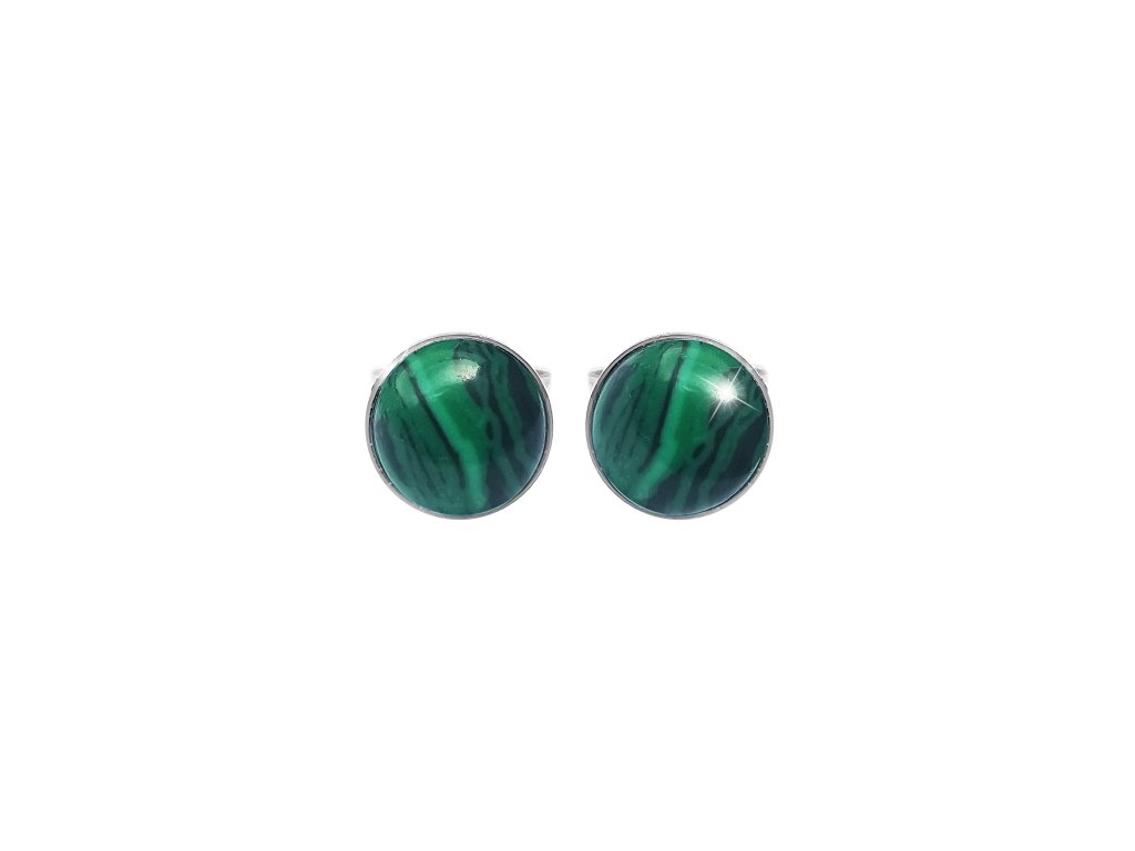 Stříbrné náušnice puzety s pravým kamenem Malachit (Stříbro 925/1000)