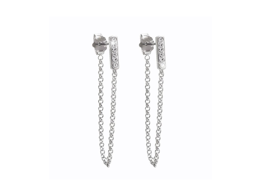Stříbrné náušnice puzety s řetízkem až na zapínání a s krystaly Swarovski Crystal (Stříbro 925/1000)