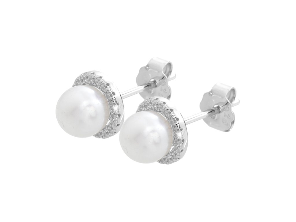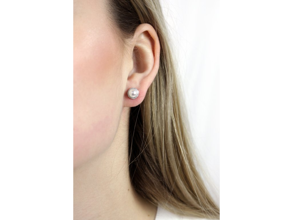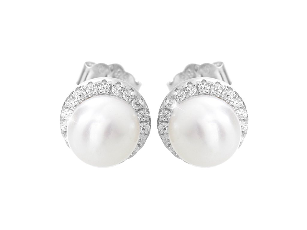 Stříbrné náušnice puzety s říční perlou a obvodem krystalů Swarovski Crystal (Stříbro 925/1000)