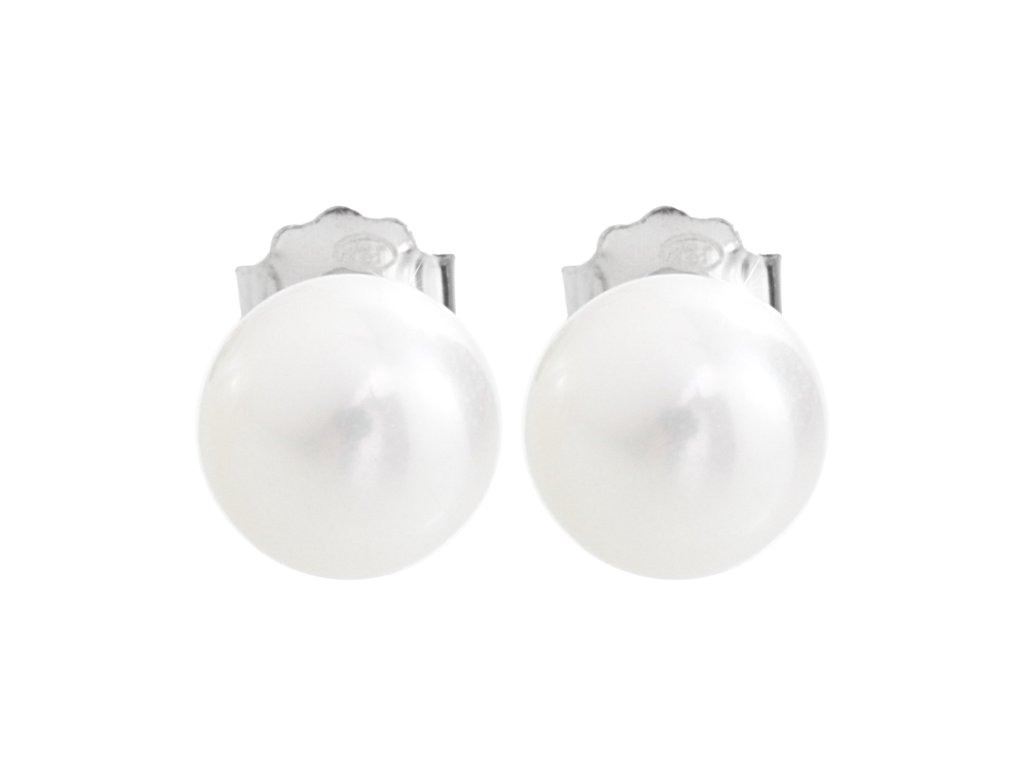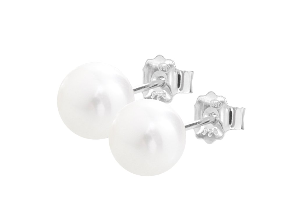 Stříbrné náušnice puzety samostatná říční perla White (Stříbro 925/1000)