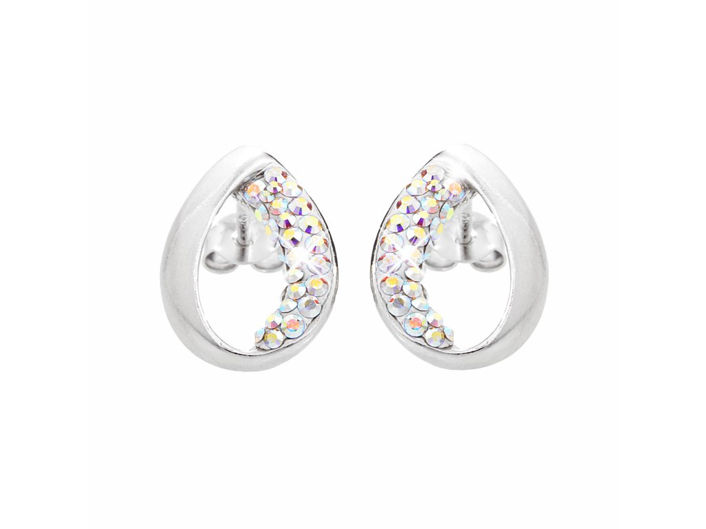 Stříbrné náušnice puzety široká kapka s krystaly Swarovski AB (Stříbro 925/1000)