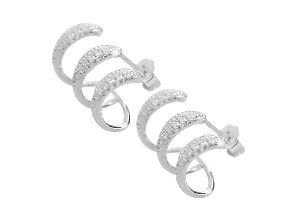 Stříbrné náušnice puzety tři kapkovité kroužky s Kubickými zirkony Crystal (Stříbro 925/1000)