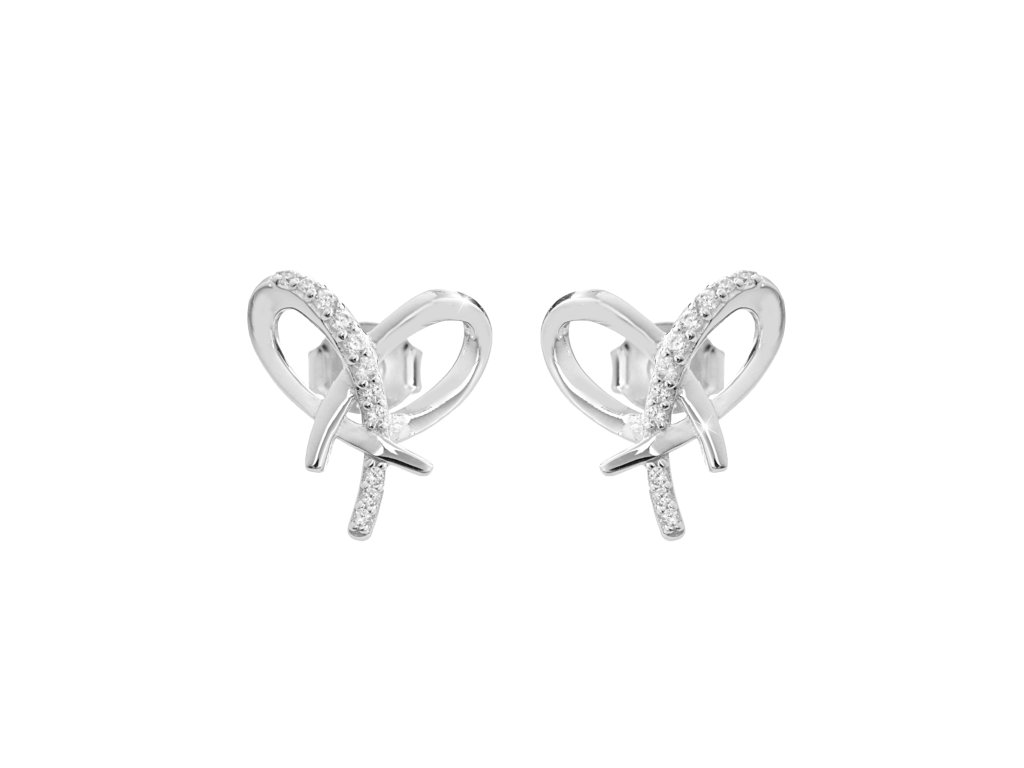 Stříbrné náušnice puzety uzlové srdce s Kubickými zirkony Crystal (Stříbro 925/1000)