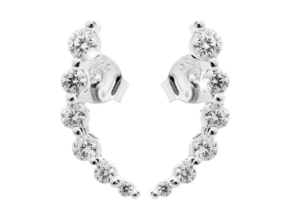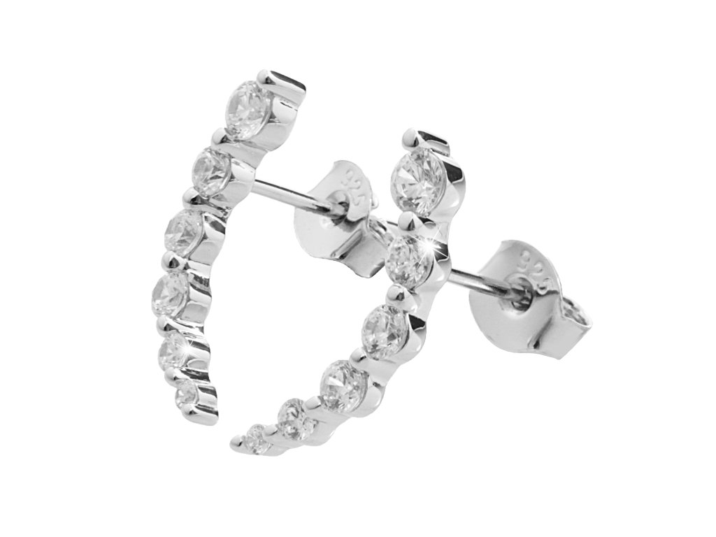 Stříbrné náušnice puzety z krystalů do lehkého obloučku Swarovski Crystal (Stříbro 925/1000)