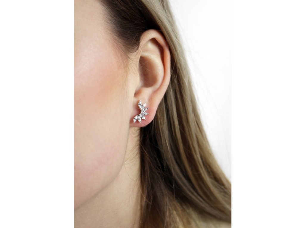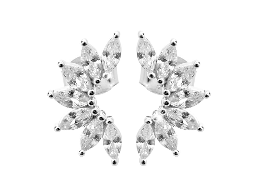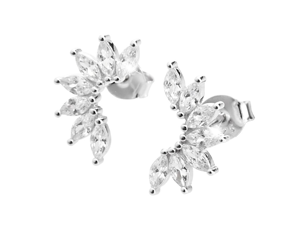 Stříbrné náušnice puzety z navetek do půlměsíce Swarovski Crystal (Stříbro 925/1000)