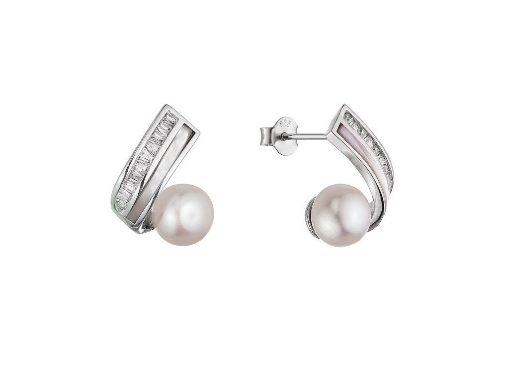 Stříbrné náušnice s bílou říční perlou a perletí 21112.1
